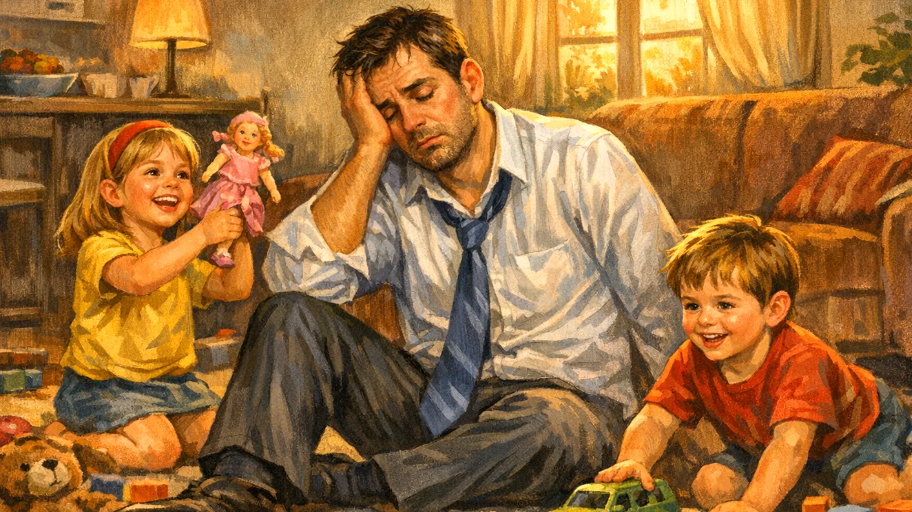 La porta di casa si apre quando i bambini hanno già cenato. Spesso sono già in pigiama, con gli occhi ancora vispi ma le palpebre che cominciano a pesare. Il papà entra, toglie le scarpe, posa la borsa e sente quel nodo allo stomaco: un’altra giornata è volata via senza aver giocato davvero con loro. Questa scena si ripete in migliaia di famiglie italiane, dove i padri che rientrano tardi dal lavoro si trovano a fare i conti con un senso di colpa che diventa un compagno silenzioso ma pesante.
